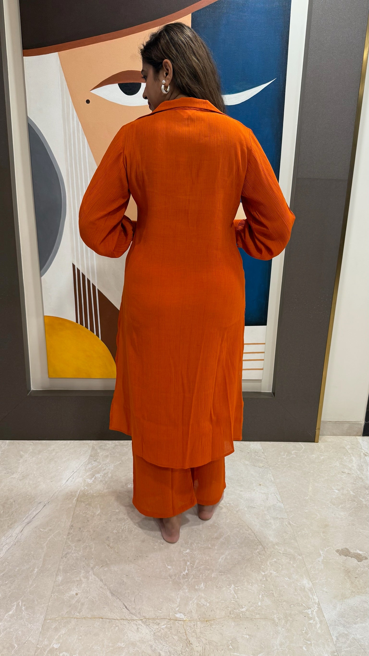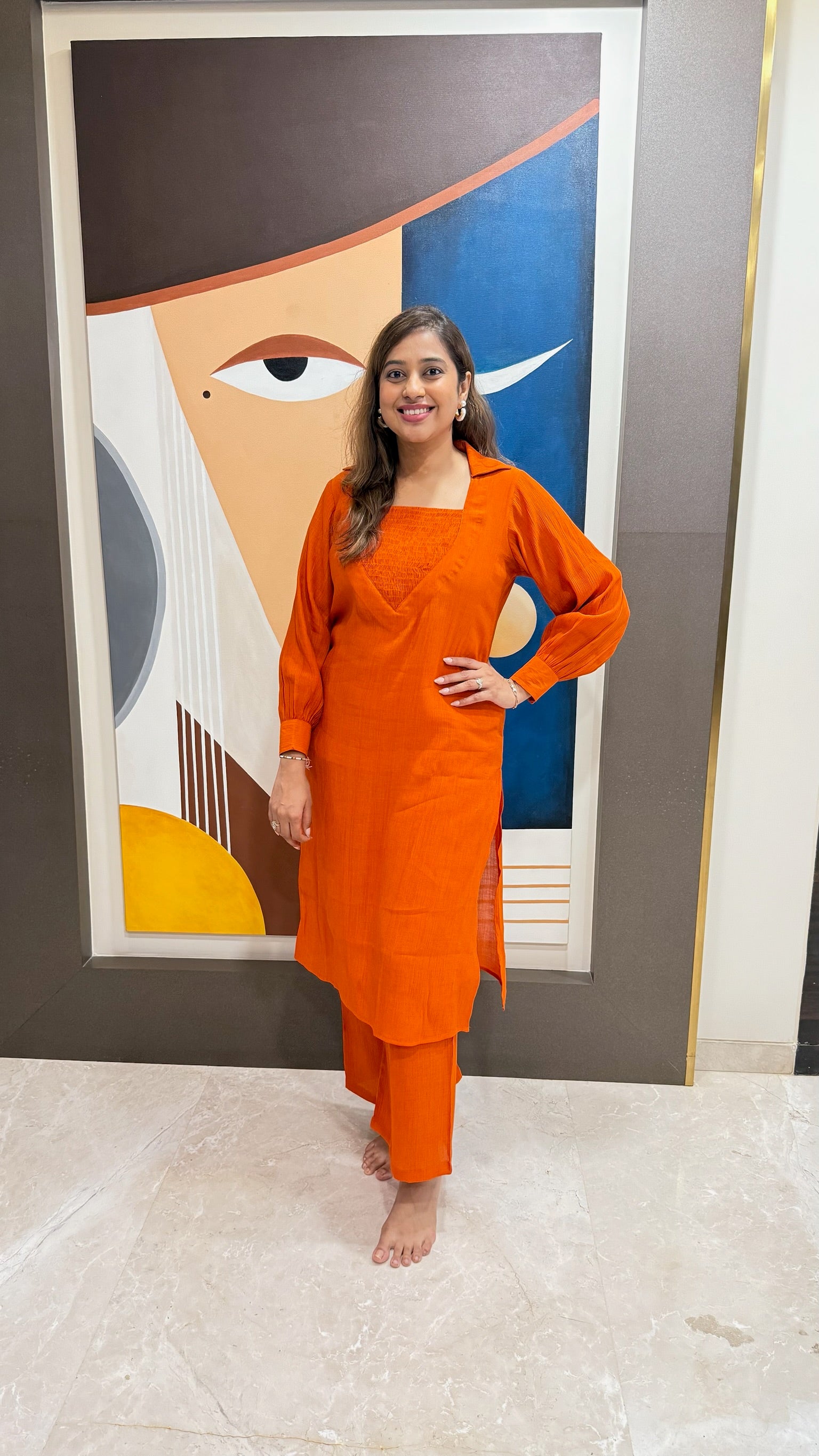 Sunset Orange Smocked Yoke Kurta Pant Set – Modern Ethnic Co-ord