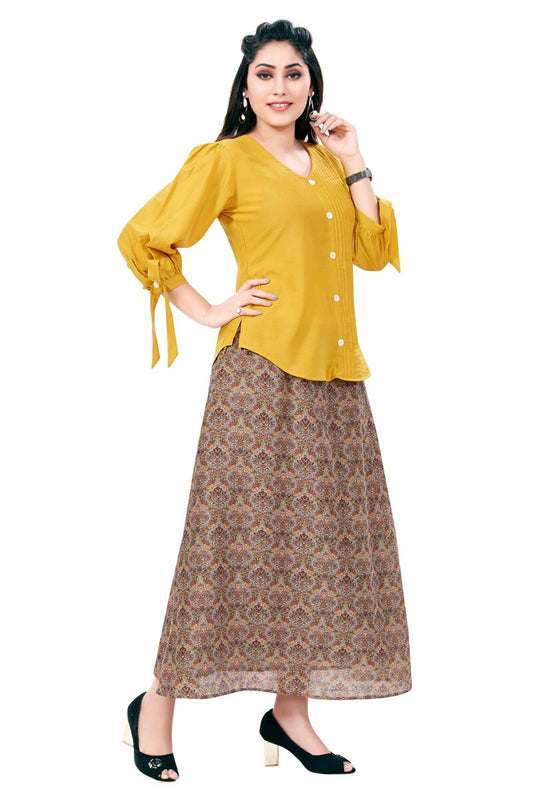 Semi Ethnic Kurti With Dhoti And Dupatta