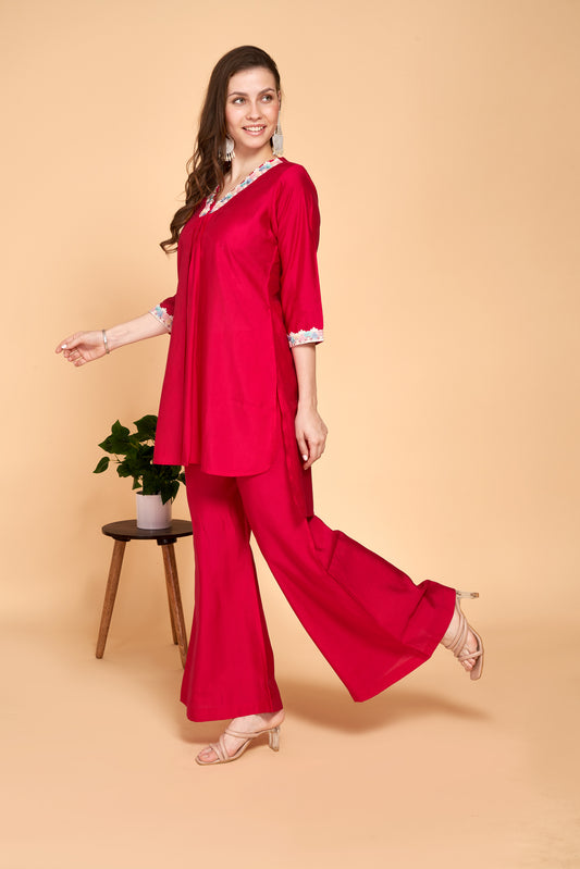 Foil Printed Anarkali Kurti Palazzo Set With Dupatta