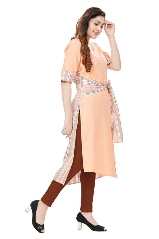 Kurti Set With Floral Foil Printed On Sleeves With Dupatta
