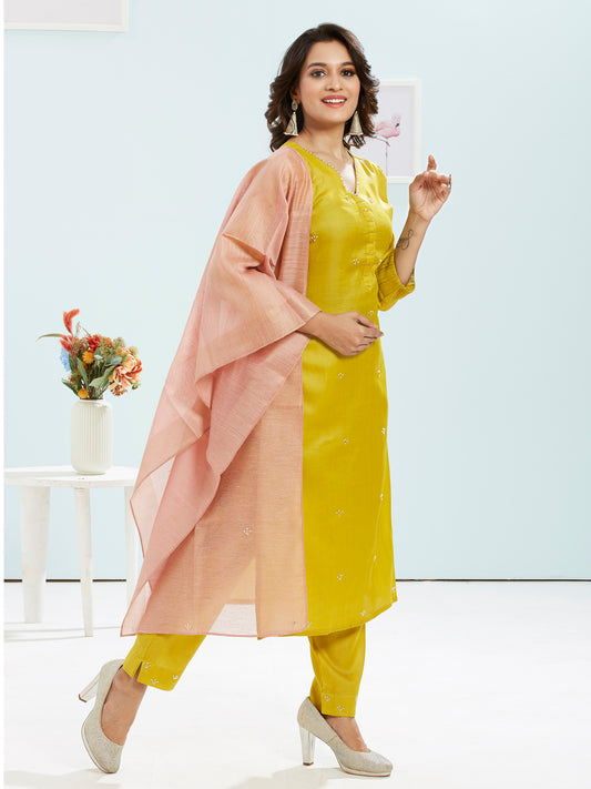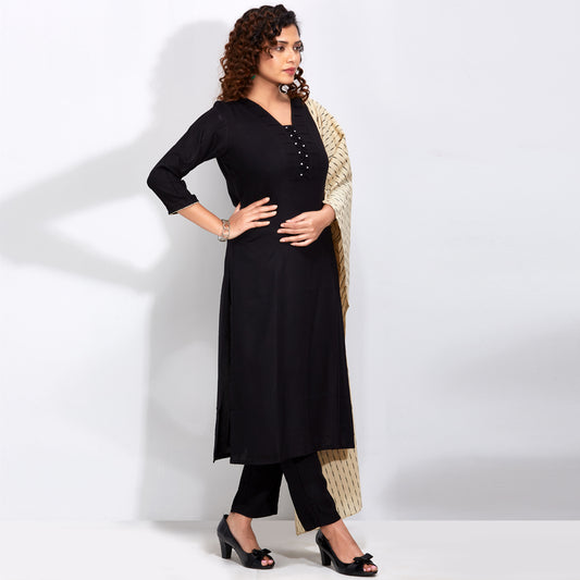 Pearl Detail Kurti Set With Printed Dupatta