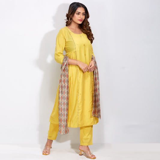 Embroidered Kurti Set With Printed Dupatta