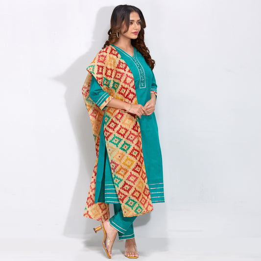Embroidered Kurti Set With Dupatta