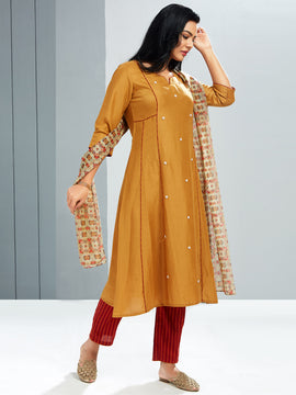 30% OFFChanderi Kurti With Long Jacket