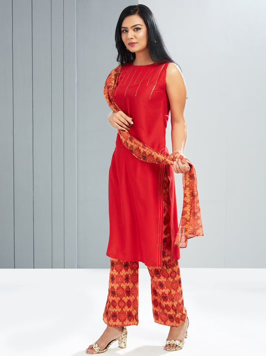 Palazzo Kurti Set With Printed Dupatta