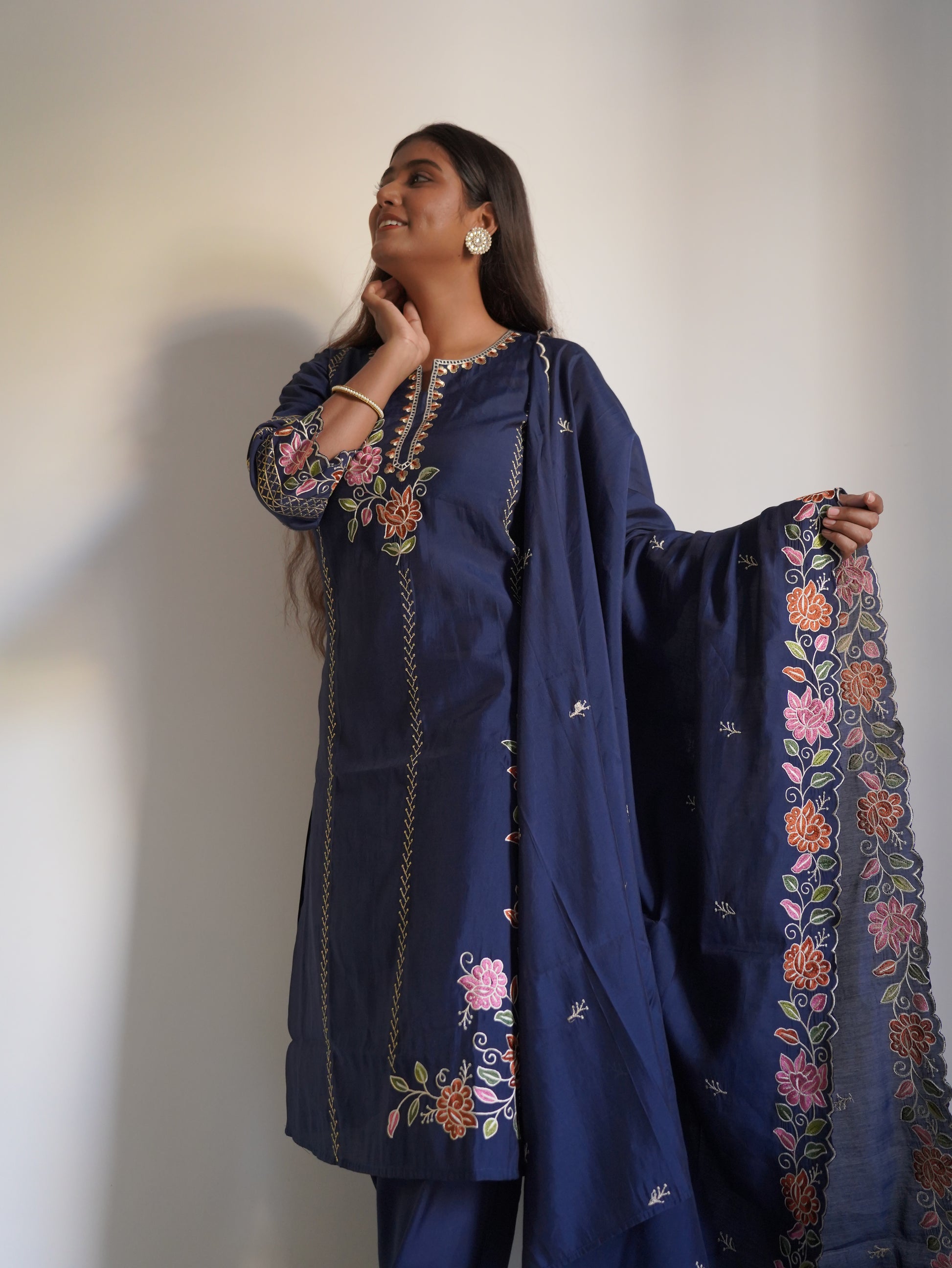 This comes in a three piece set includes embroidered Kurti Set with embroidered Dupatta
